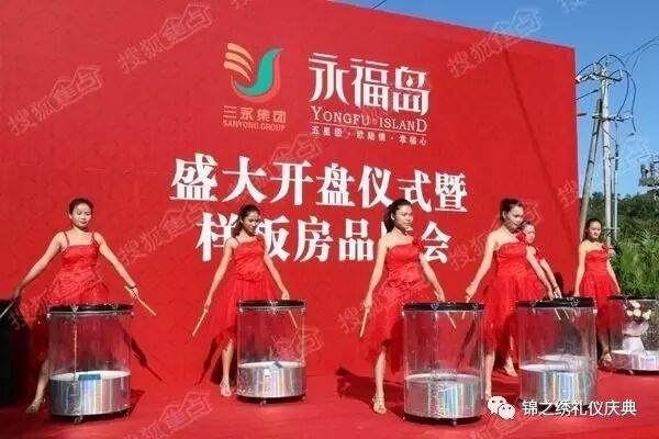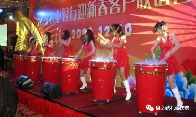水鼓舞与水相连,寓意激情四射。美丽的姑娘踏着激情的音乐起舞,敲响了铿锵的鼓点,现场鼓声震天、彩光流转,在充满激情的击打声中,同时也在激发与会者奋斗的激情。水鼓演员激情鼓动全场,在欢腾的气氛中,大幕徐徐拉开,精彩环节陆续开始,寓意着美好的前景刚刚开始。